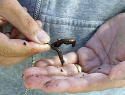 The fish - trout and small salmon - are crazy about our worms. Some bite the worm from the hook without getting caught. Others just hit the silvery metal plates that are attached to the lines to attract fish in the water. But still enough fish find their way into our cooler that we can be sure to have a nice dinner. My task is to learn from Gil how to bump a wriggling, slippery trout off into the kingdom of fish-heaven quickly and without pain. Normally one would give the fish a blow to the back of the neck with a wooden rod. For lack of anything better we break their necks over the hard edge of the boat. It's not that difficult if you think about them as a delicious dinner! The division of labor for our future fishing adventures has been fixed. Martin has to deal with the worms, I'm responsible for the rest. In plain English: kill and clean. In the late afternoon we set off for home with 10 trout and one small salmon in our cooler.