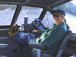 As is typical in America preparations and the drive itself take more time than the main reason for our excursion. First we have to prepare the boat the evening before. To fortify ourselves the next morning we eat a big breakfast with eggs, bacon, potatoes, toast and with brown water (well-known to those who know "Baghdad Café") - American coffee. The restaurant could be anywhere in the Wild West. Four cowboys with their hats on sit on a long counter and flirt with the waitress, on the tables are plastic table-cloths, mustard and ketchup, in a corner the latest newspapers with the most important news (robbery, murder and manslaughter), on a blackboard the specials of the day, country music from big speakers, and some older couples who are also early risers like we are.