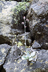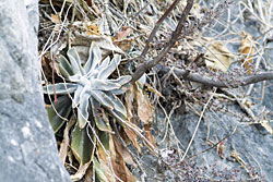 Both Echeveria grisea and Thompsonella platyphylla were discribed from the Caņon de la Mano and the Iguala Canyon respectively. These are two good reasons for us to pay a visit to this canyon. To be exact, two visits, one in November of 2004 and another one in December of 2006. On our first visit we had to hike in stifling heat along the railroad tracks as the canyon lies at an altitude of about 900m (2950 feet) above sealevel. We only found one of the plants, Echeveria grisea. The second visit about which we want to tell you now, was a lot more successful.