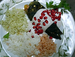 Serve chiles with threecolored rice.