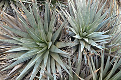 On the last day of the trip we drove up the Cerro Zamorano. First we took pictures of Pachyphytum compactum, then we started looking for Sedum fuscum which Denise found first with a pair of eagle eyes. It reminded her of a tiny Dudleya species near San Diego. Further up the mountain we also saw the beautifully compact and blue-gray Agave applanata which was worth another photo stop. In the evening we were back on native soil in Jalisco where we toasted to a successful trip and a future Mexico adventure for Denise in Oaxaca.