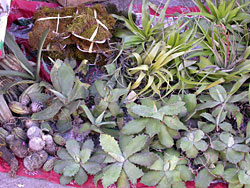 We make a short stop in Chilpancingo, the capital of Guerrero. Mexican markets always have fascinated us and especially before Christmas it is interesting to look for plants that are used in the decoration of the nativity scenes. Tillandsia usneoides, carpets of moss and fir cones are standard offerings. At small improvised stalls along a side street of the market we discover many more interesting things. Handfuls of orchids, all pulled down from trees of the surrounding mountains, are available at every stall. Flowering big-leaved Tillandsias are equally popular. Piles of Agave cupreata in all sizes are stacked up besides various species of small cacti. A woman offers her little white-spined Mammillarias, the majority of them without roots, in a plastic container. Naturally, the sale of these plants is illegal because they certainly have not been collected with a permit by the proper authority, but nobody seems to mind very much in Chilpancingo. In cities like Oaxaca or Tehuacan, for example, where we always saw a wide variety of plants for sale in front of the markets on earlier trips, only Tillandsias and moss are sold now. The Mexican law doesn't seem to have reached Chilpancingo yet.