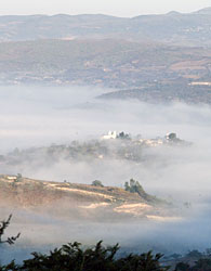 We leave the hustle and bustle of the market. The traffic is a horror for car drivers. The city feels very much like a Central American or African city. Or at least in our imagination life on those streets would be as chaotic as it is here. Nobody follows traffic laws, red lights are just simply ignored, just as the lines on the streets seem to be a total waste. The main thing is to somehow get ahead. Even the police don't give a damn about the other road users, and so we're matching them. Just honk your horn and push ahead, or completely block an intersection. Finally we somehow manage to get out of this crazy city and go eastward, in direction of Tlapa de Comonfort. For a while we drive through beautiful oak forests and stop many times for plants such as Sedum hemsleyanum and Villadia recurvata, both of which are flowering now. Past Chilapa the road snakes up into the mountains in countless curves. Driving up at the crack of dawn and looking back, we have a fantastic view over the valley of Chilapa that is shrouded in mist. Only a few hills and a church rise above the dense fog. As soon as we reached the top of the mountains, the road began winding down the other side into a deep valley. We stop almost at the bottom of the canyon to take pictures of the rare Agave petrophila in a cliff. On cattle trails we climb up through wet grass and finally find an inflorescence, the yellow flowers of which we can photograph. Soon we pass the bridge over the Rio Petatlan and then the road spirals upwards again. There's a big Coca Cola factory in Atlixtac, an inconspicuous place in the middle of extremely eroded, naked hills. Large clusters of orchids attract our attention at the bridge over a beautiful river. Far below the water sparkles in the sunshine, rushing down towards the canyon. The small river is picturesquely framed by green trees and bushes. On the shady rocks we discover a flowering Echeveria that resembles E. fulgens. Just next to it grows Thompsonella mixtecana, this one in flower too. The plants at this place still have pretty rosettes with fat, green leaves. Later we find the same species in drier areas where the plant died back and survives just as naked stems that couldn't be identified as a Thompsonella without the old inflorescences.